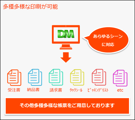 | ショップ毎の運用に合わせて多種多様な帳票の印刷ができます。 多種な運送会社とも連携しておりますので、配送伝票もスムーズに印刷できます。 また、ロゴの表示などエクセルを使用してのデザインをカスタマイズ可能です。 |