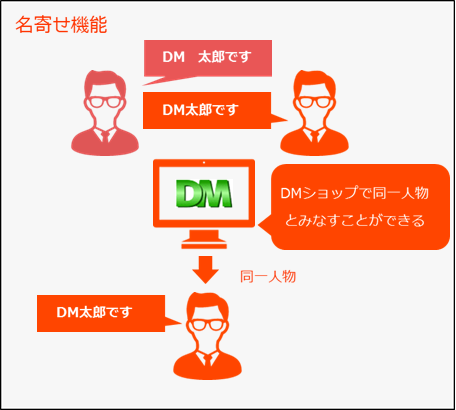 そんなときには名寄せ機能を使用し、お客様を同一とみなす機能もございます。