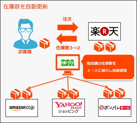 複数ショップの在庫を自動で更新することにより、在庫が存在しないのに、